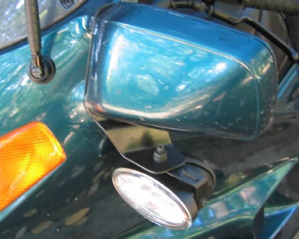 MountingOne of the nice things about these fog lights is how easy they are to mount. Using a longer bolt for the front fork reflector and a couple of spacers, installation is simple and straightforward. You'll need two spacers on each side, one to stand off the light housing past the front fender and another to go between the two mounting tangs on the fog light housing.