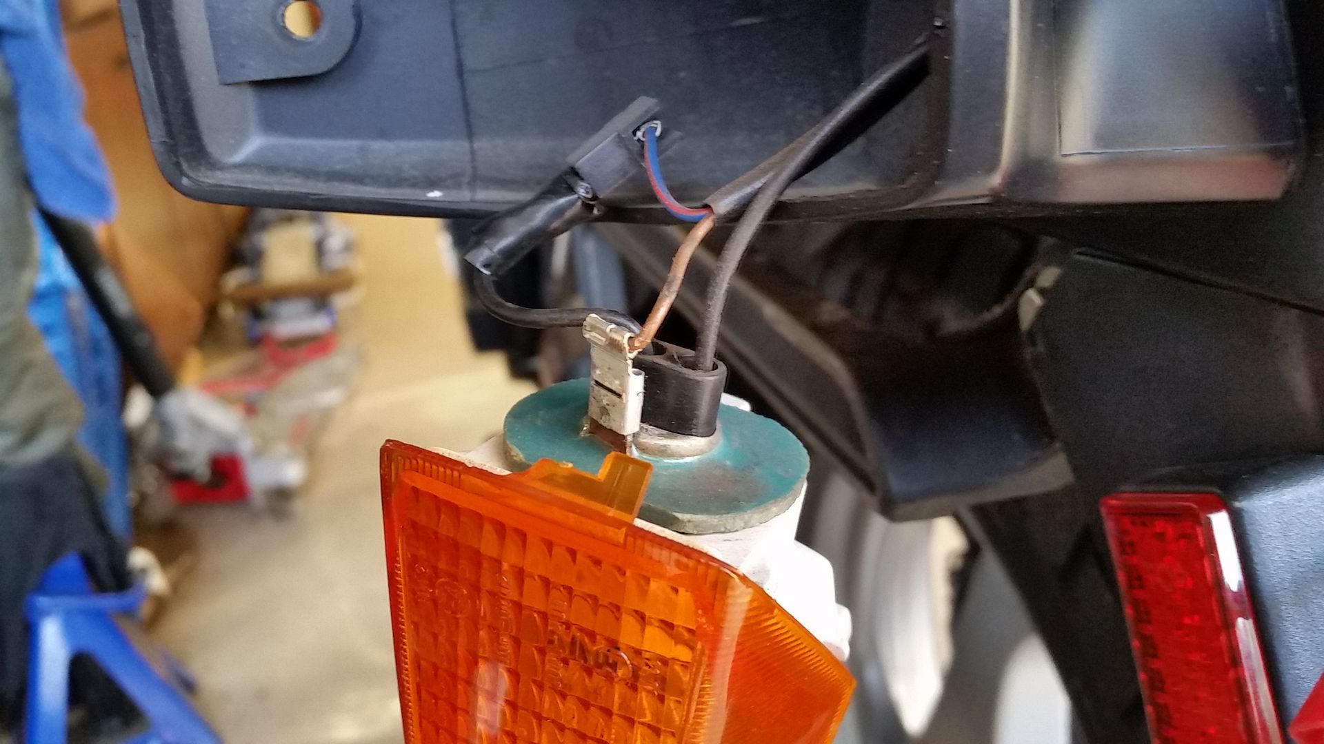 thanks for the link!!!  the set up had to be something available.  looks like the same sockets had been installed in the turn signal housings with 1157 bulbs as part of kit from same company, but the one element of the bulb was not wired up (the red connectors in the first pic).  i suspect that is too much heat for those small housings to dissipate.