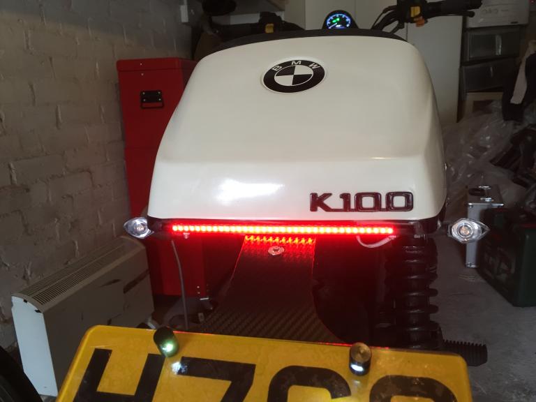 When I finished the bike in 2017 the mechanic at the MOT centre did not like the rear strip light because when the brake lights are on the integral indicators do not show up. So to make him happy (and keep me safer because he was right) I fitted a pair of mini indicators either side of the rear tail unit. Problem solved.