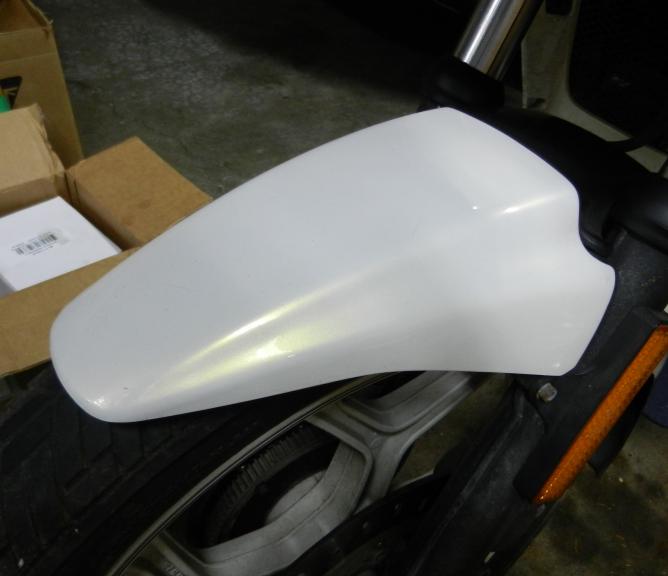 Update: Last night I painted the pearlmutt on the main fairing and today I did the final assembly of the bike. As luck would have it the turn signal flasher developed a problem. Fortunately, I had a spare, and was able to get the signals working. Now I just need to fix the bad flasher.