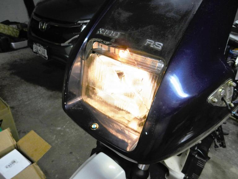 With the fairing removed I did a good cleaning with S-100 and replaced the broken headlight with a spare I had. Outside of a few stone chips and some crazing around a mirror mount the paint is in pretty good shape. Wow! The more I work on this bike the more it looks like it doesn't need much work.