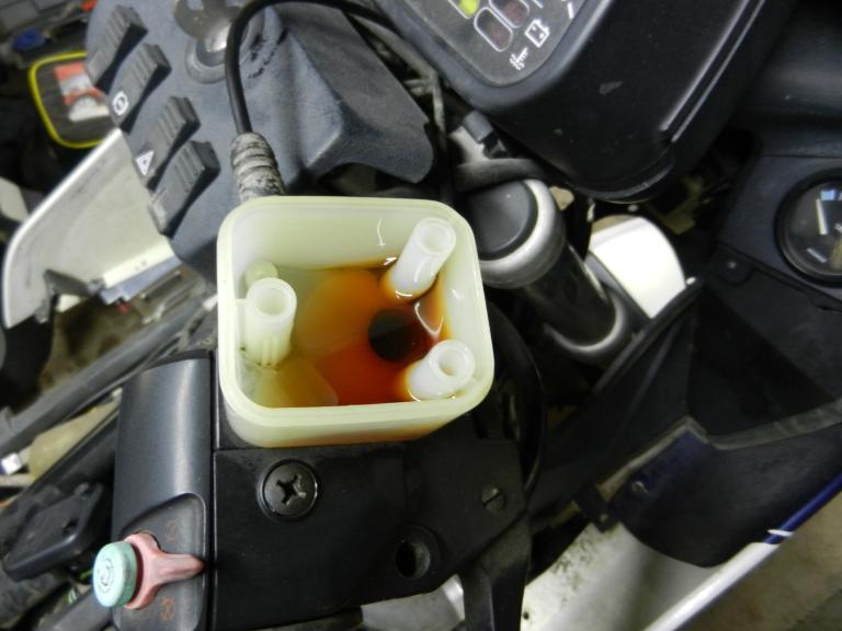 Popped the cover on the front brake master cylinder and the fluid looks like maple syrup. I'm gonna do a flush and bleed before I strip the bike down to get that crap out of the parts.