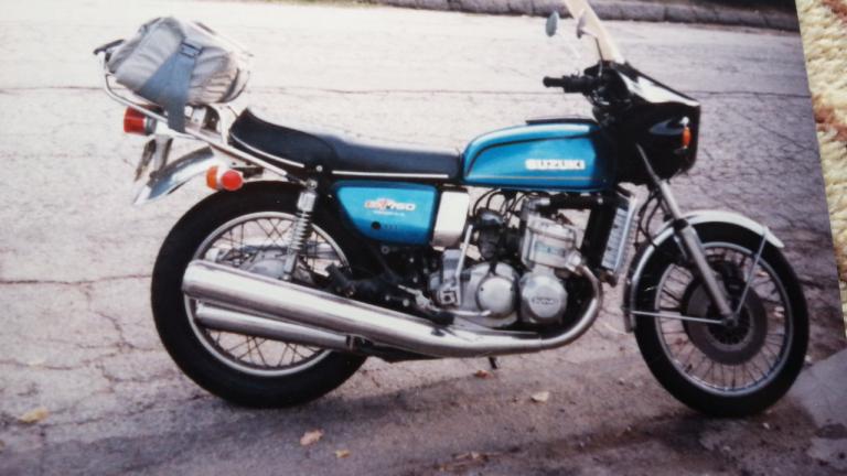I've only had 2 flat tires in 40 plus years, one  was on a '76 water buffalo, about 1 mile from home, at the end of a ride, front tire, got home slowly with no drama.  The other was on my k75, rear tire, i bounced it off center stand in the garage and i couldn't roll it backwards, it felt like the brakes were on.  Quickly figured it out and reshod both ends.  It occurred to me, some may not know 2 stroke slang for the Suzuki, gt750 aka a water buffalo, liquid cooled triple.  So here's a pic.