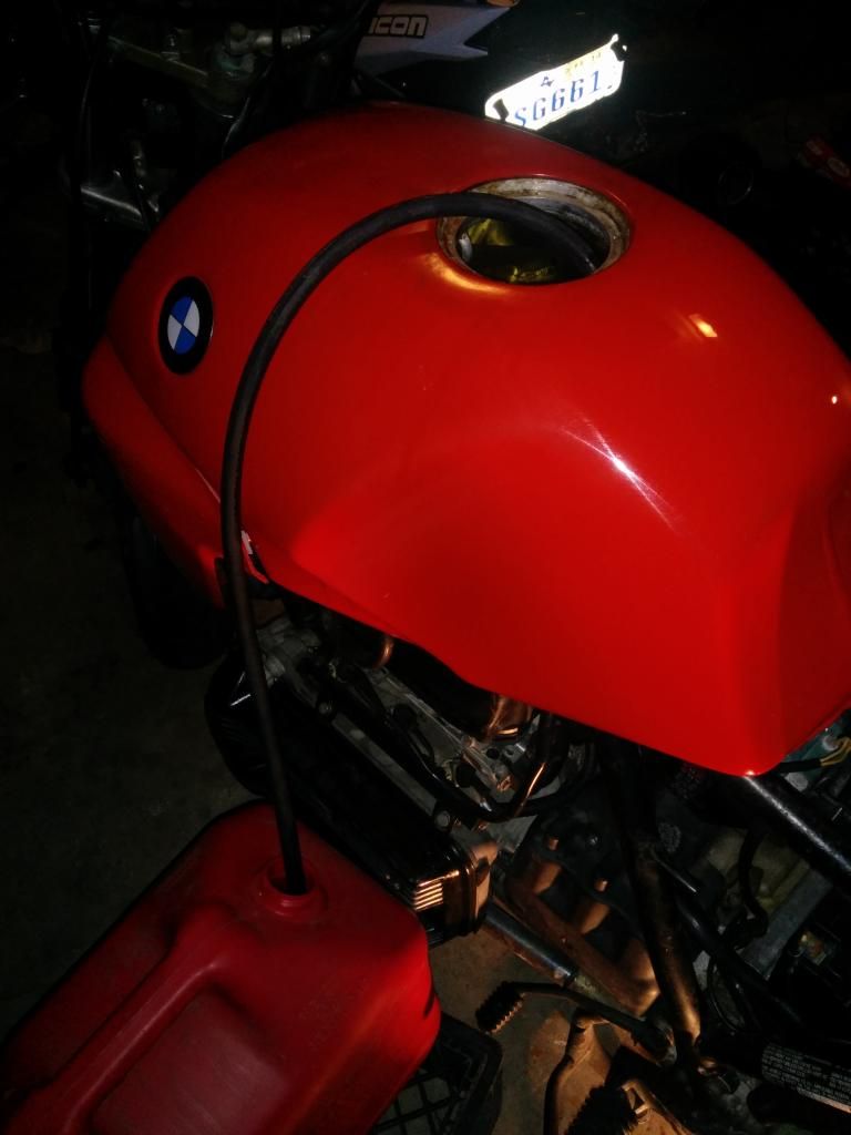 I used 5/8" fuel hose that I had lying around and replaced the crankcase beather. It fits very well with no kinks and the hose clamps. I went ahead and ordered a factory hose from BMW though. It arrives on Thursday.
