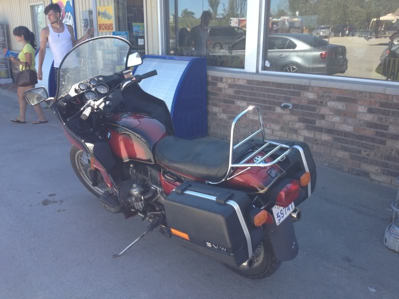 Saw this on my way back to the city, his cases were immaculate. His words were "BMW, you can't beat the ride." Then his half drunk female cohort pulled up on a Harley and tried to stop me from taking a picture of his bike saying "not the licence plate!!"