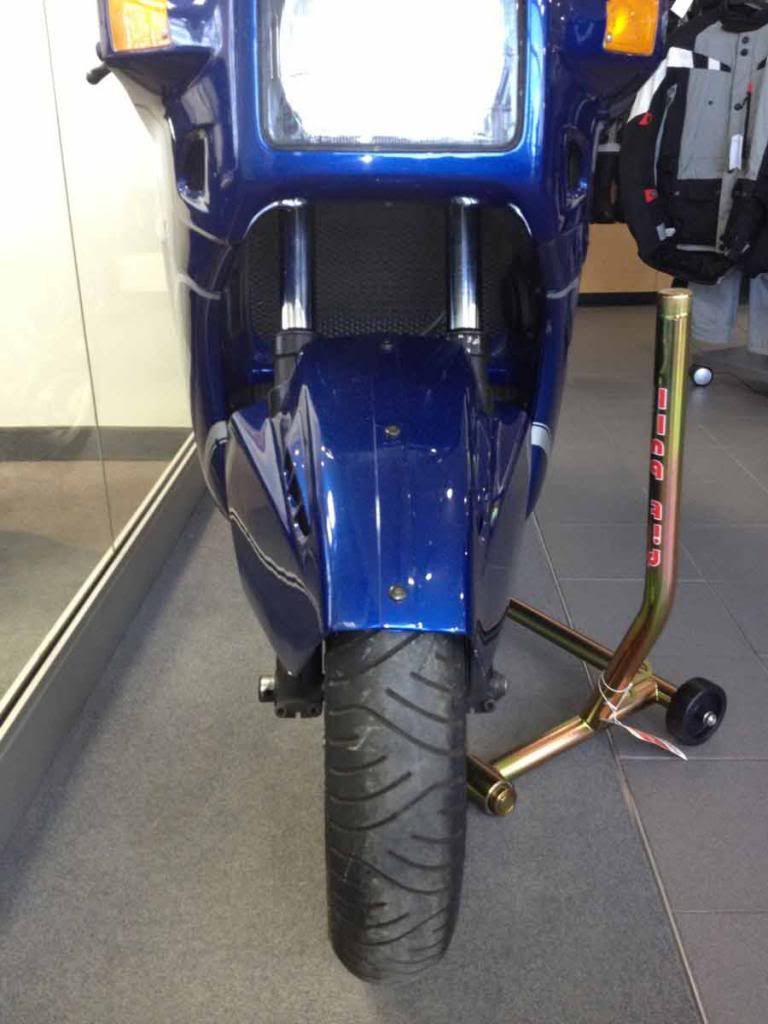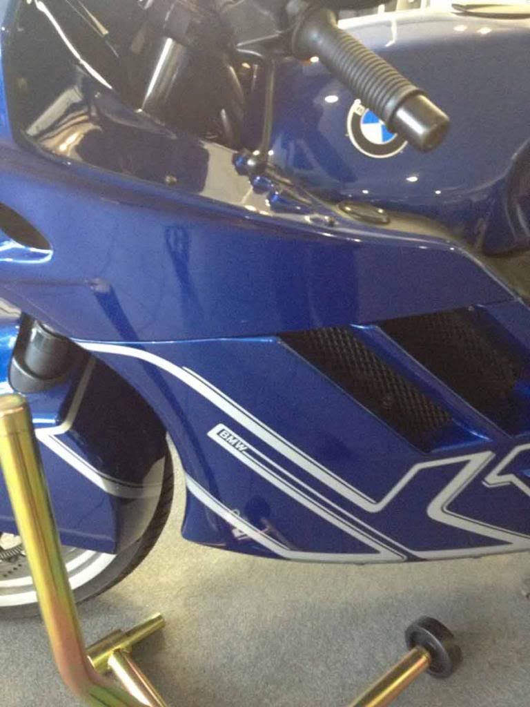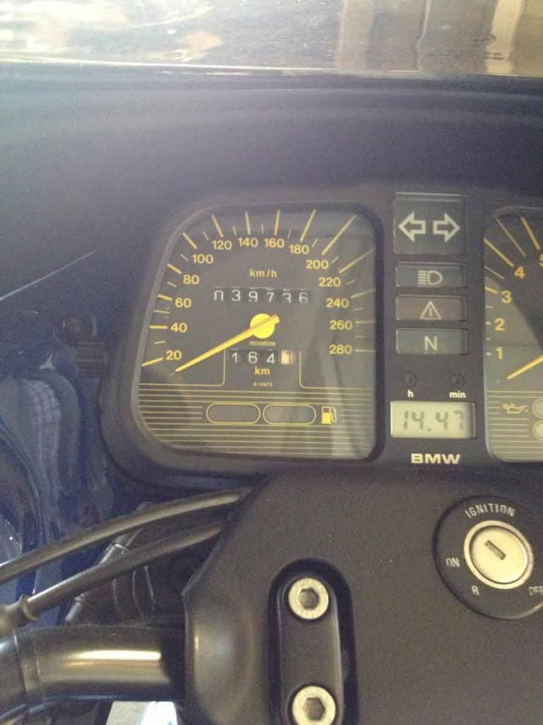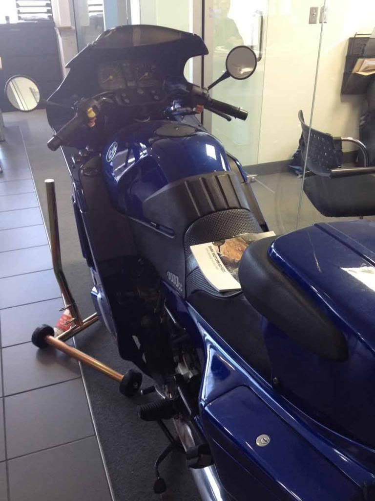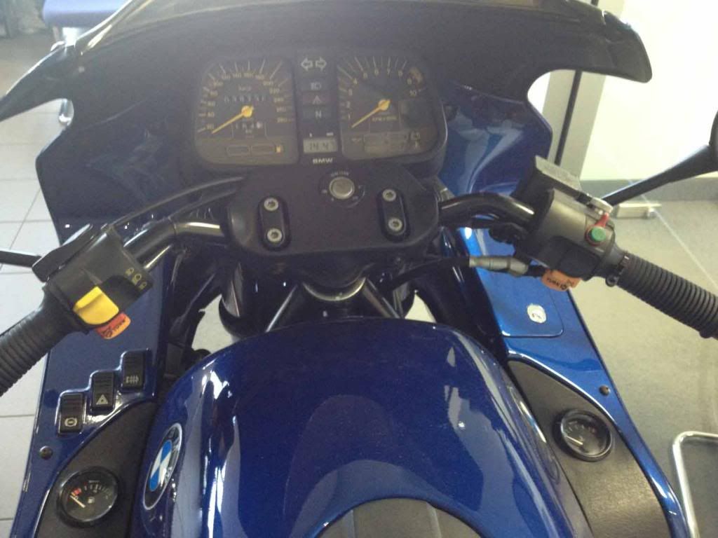 The K1 was parked in the BMW Motorrrad on consignment. Low miles. Well looked after. Owner wanted an arm and a leg for it. Nice show piece. Same color as my K100RS too so I snapped as many photos as I could, pictures forthcoming...