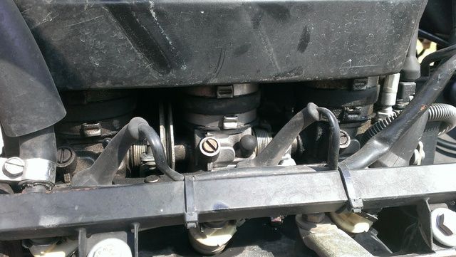 I pulled the lower fairing to have a peek at the fuel line etc. There were no leaks or sprays that I could see. The line(s) that I was able to lay eyes on were dry including the fuel pressure regulator's connections. What wasn't dry was the rear throttle body. It was wettish with black grime. The middle one was clean and dry. The front was grimy but not as bad as the rear and it wasn't wet looking. See the pic below. What could be the cause? FWIW, all three of them got a bath while I was spraying them down with carb cleaner trying to detect a vacuum leak.