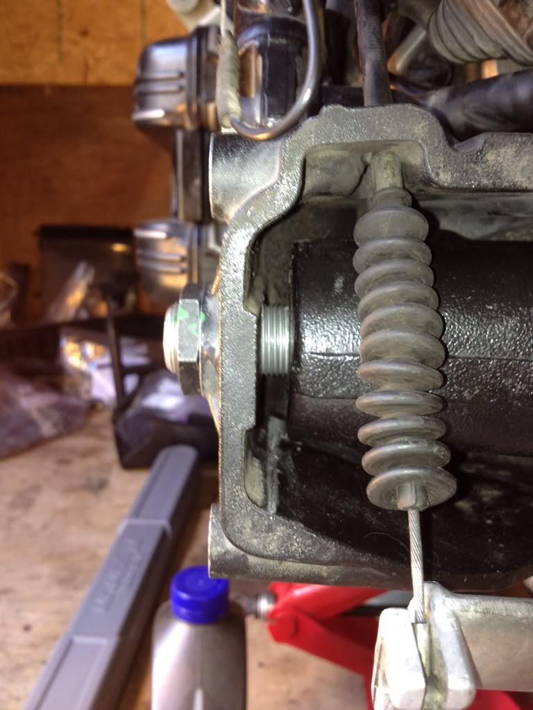 Can someone confirm procedure for securing the left and right pivots: attached the swing-arm/pivots, snug at first to seat the bearings then torqued, however I noticed on the left side the space between the transmission housing and the swing arm have loads of thread showing, wondering why no washer and if the thread will eventually mutilate the bearing :dunno2: perhaps more engineering talk than procedural :tongue just wanted to confirm the assembly.