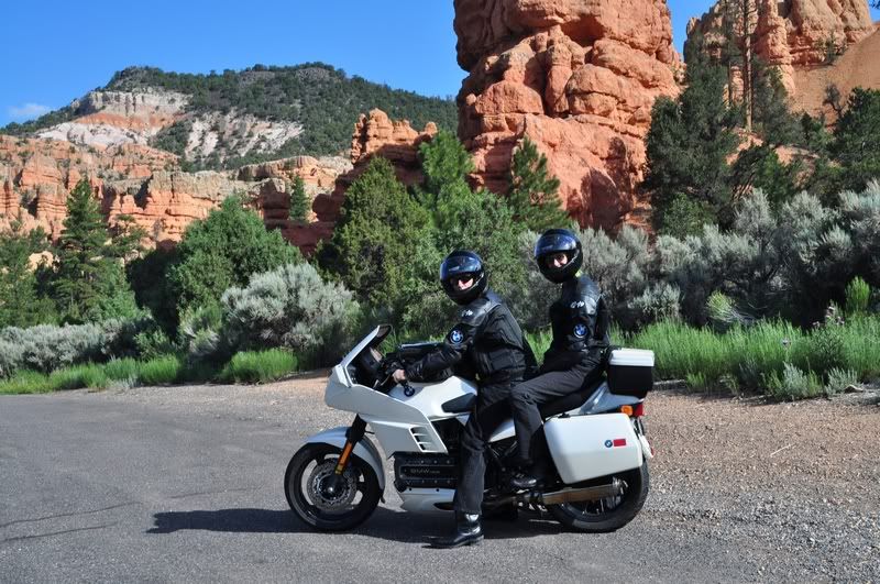 Our first stop was at Bryce Canyon National Park.  We toured the park, then spent the night at Tropic, UT.  On Thursday while on our way to Evanston the BMW began to make an unusual noise.  We limped into the BMW dealer in Sandy, UT.  After a quick going over, the drive shaft was pinpointed as the culprit, and the parts were placed on order, with the hope that they would arrive on Saturday, if not,  it would be another 4 days before the bike could be repaired.  The parts arrived on Saturday, the bike was repaired and we were back on the road.