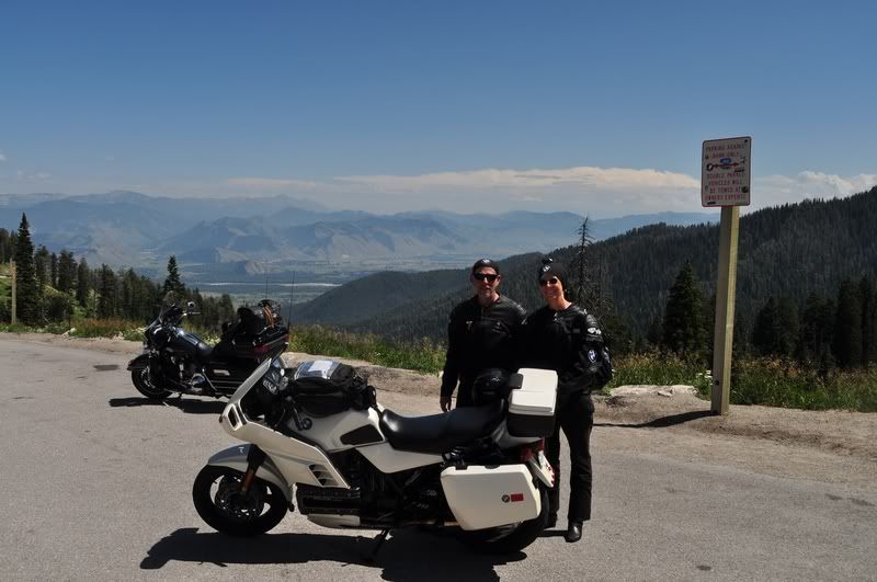 We met up with Tom & Jo in Logan, UT. and the trip was on.  The next day while stopping for lunch in Idaho Falls, we discovered the bike was leaking oil from a stripped out head gasket bolt.  I was beginning to wonder if we would make it to Glacier.  The nearest BMW repair shop was in Missoula, MT. a very long way to go with a leaky Beemer.  Tom called a friend of his and they came up with a solution.  We sealed up the bolt with some Red (high heat) silicone sealant, waited an hour for it to set, crossed our fingers, and hit the road.  The fix worked, and held for the entire trip.