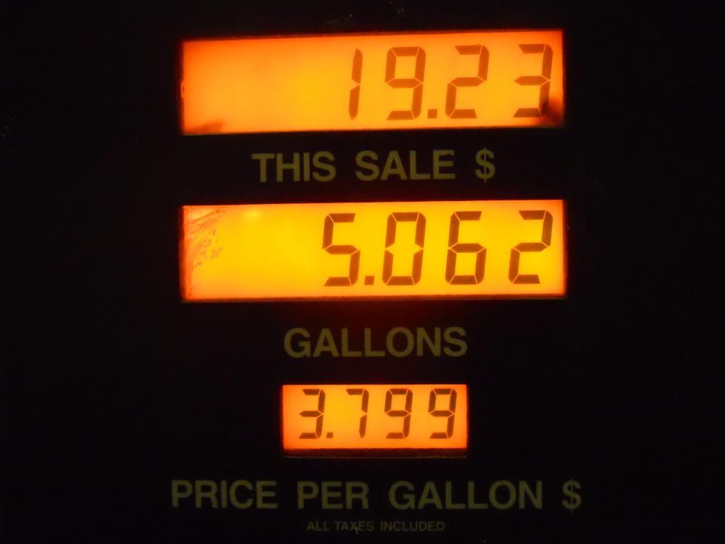 This means I had .24 gallons left in the tank. Love those 80 MPH speed limits in Texas,but it makes the girl thirsty.