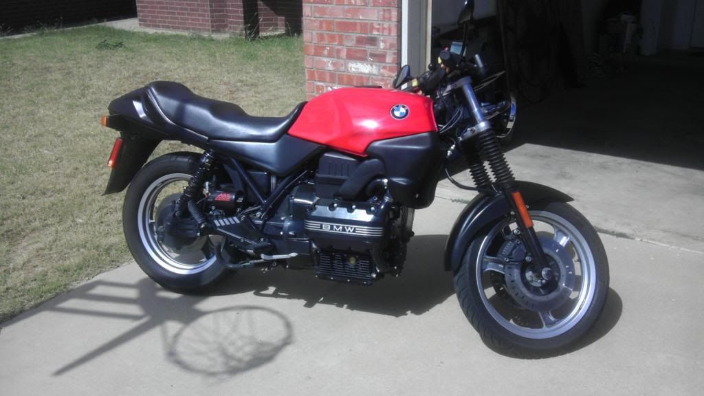 1991 BMW K75S. $2000. Bike has 53K miles and runs great. I made it into a naked/ café style bike since most of my riding is in town. Still have all the original K75S fairings and brackets and it can be easily put back to stock. Also has hard side luggage and top luggage. The black paint is plasti dip and can be peeled off. Please pm me with any questions and I can give you all the details. Bike is located in Lubbock.