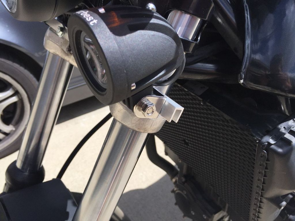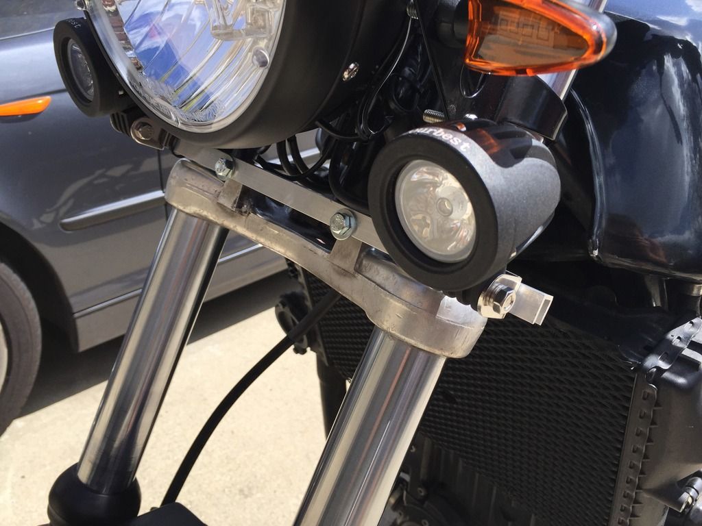 Thank you all. Laitch- Below is a closeup, up the running lights. Just a simple $4 piece of angle aluminum from home depot, drilled 4 holes, and mounted to the two holes on the fork cross-bar.