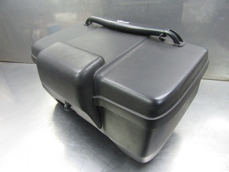 • . . .some time ago ordered original top box but it is without mounting plate. How is this plate looking? Easy to fabricate, or need to search original part?—You need to search for both the plate and the mounting pin shown in the photo that attaches the box to the plate although you seem resourceful enough to fabricate a substitute. I haven't read of anyone doing that with the 22 L top case.