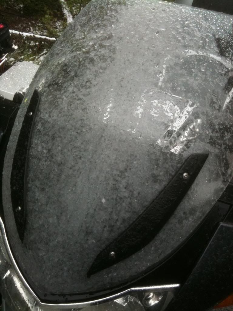 Observations: Ice continues to maintain low friction coefficient and may cause issues with regard to proper handling characteristics.