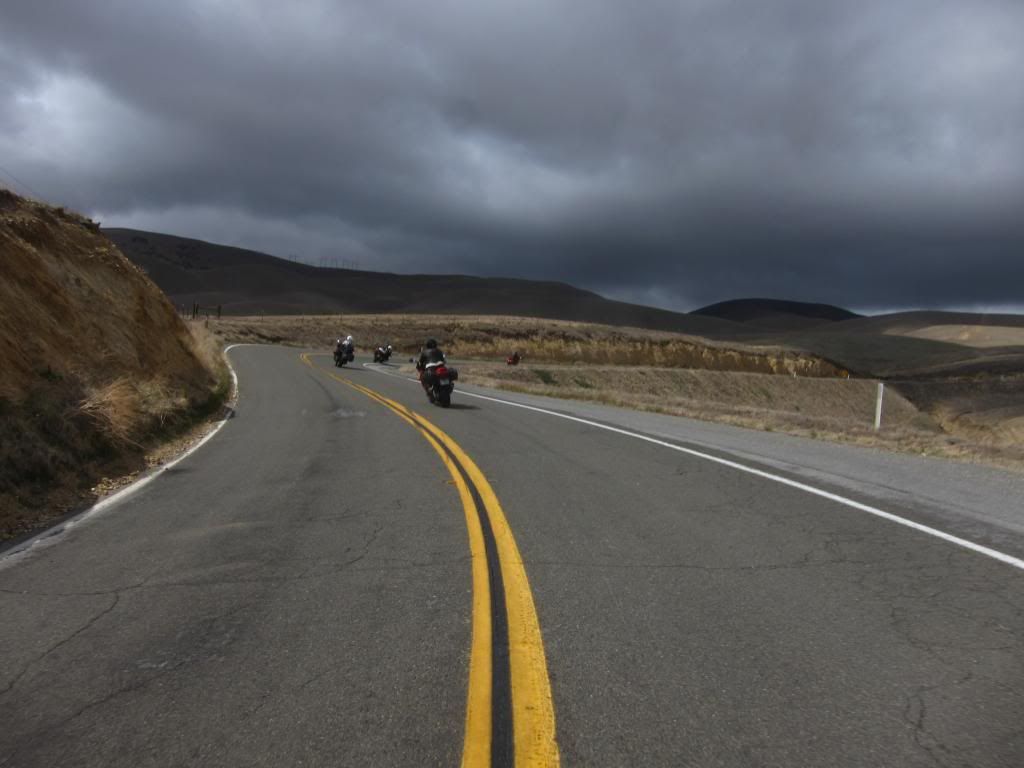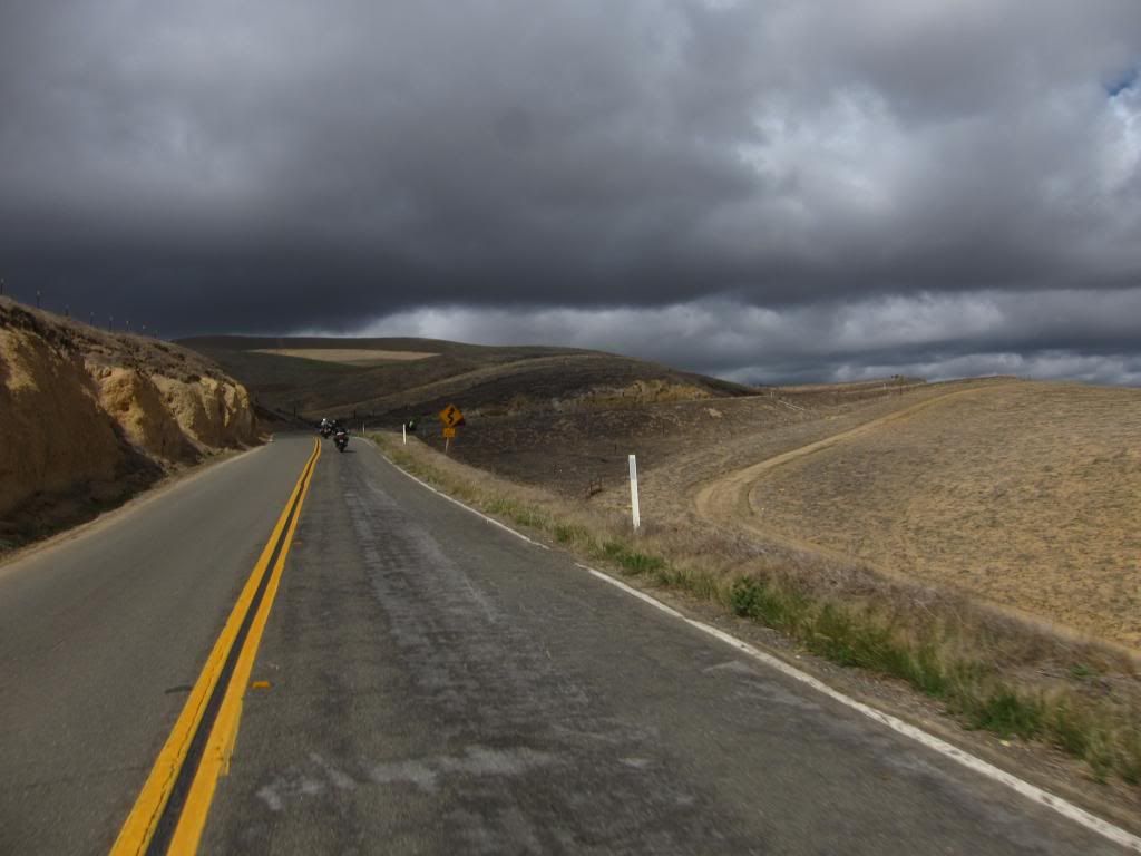 As we headed north on Hwy 33 we saw dark clouds parked on top of the pass. O.K., so we’ll get a little damp…we’re not made of salt and won’t melt.