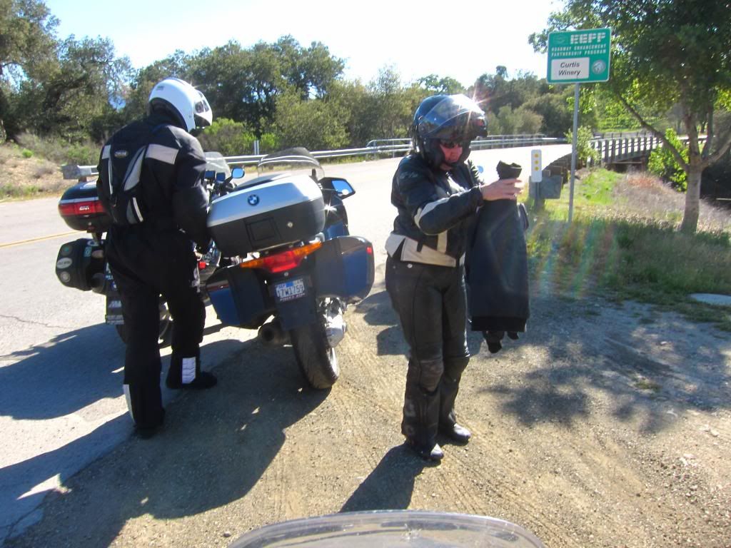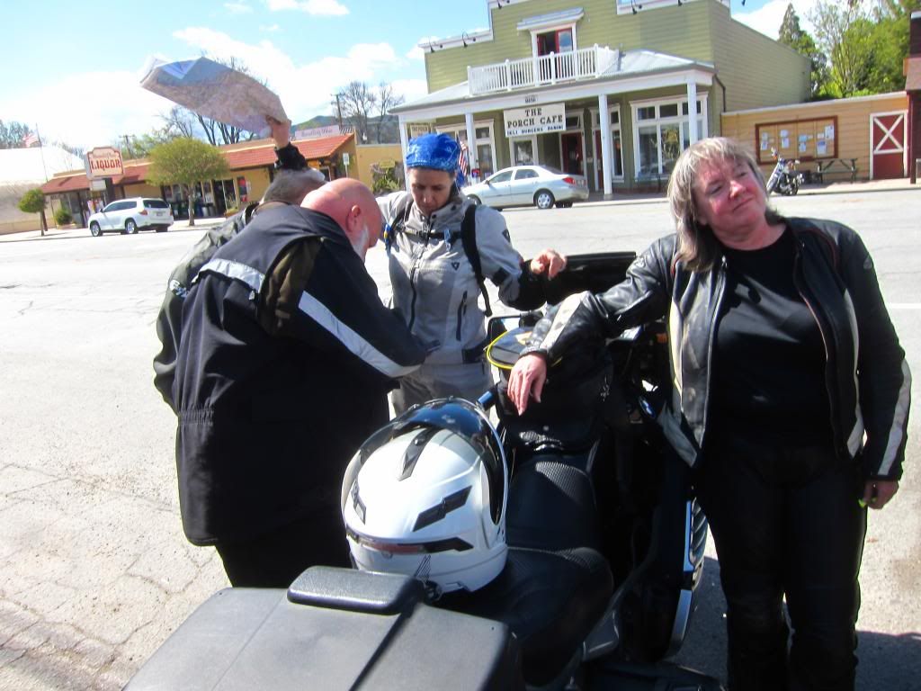 Turns out that Kris (viffergyrl) had left her left saddlebag open and her heated jacket had blown out of the bag – unbeknownst to her.