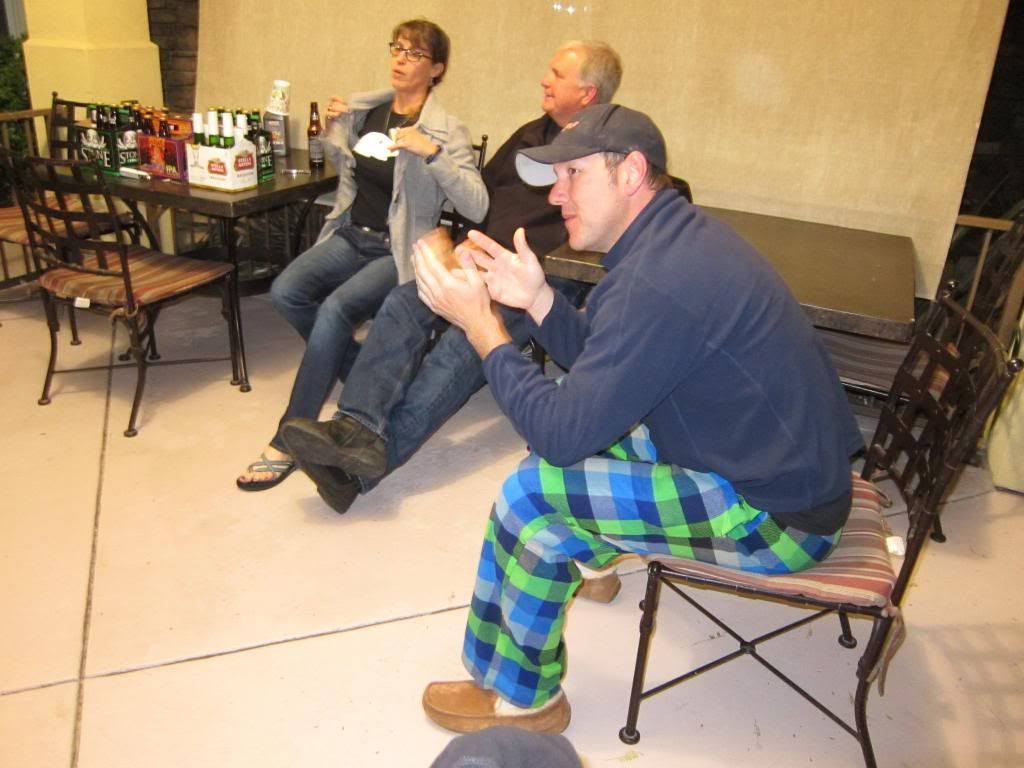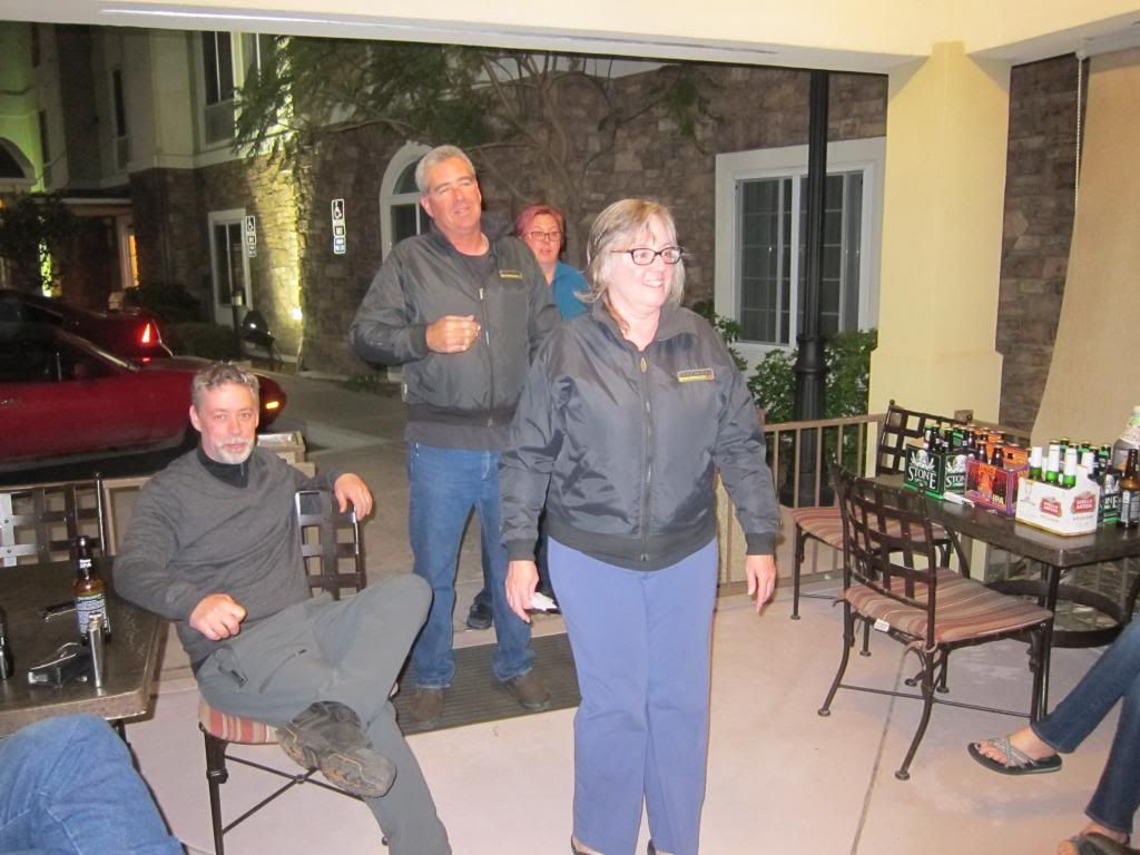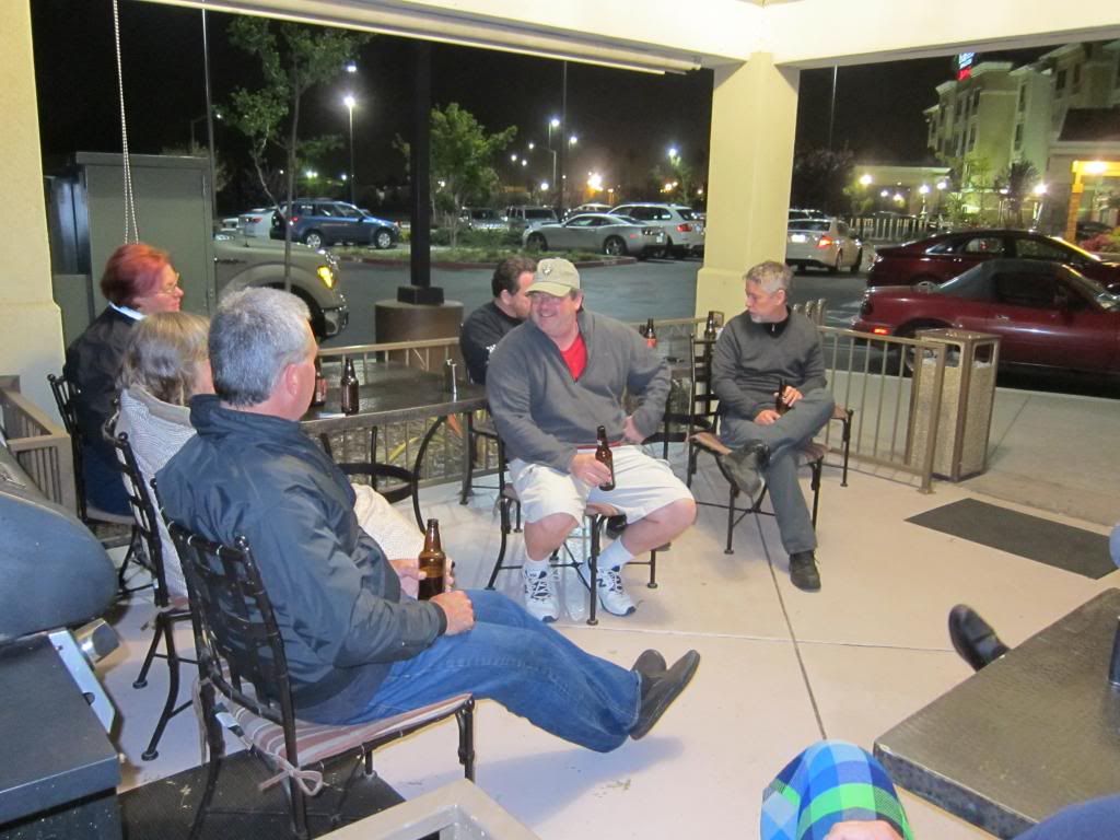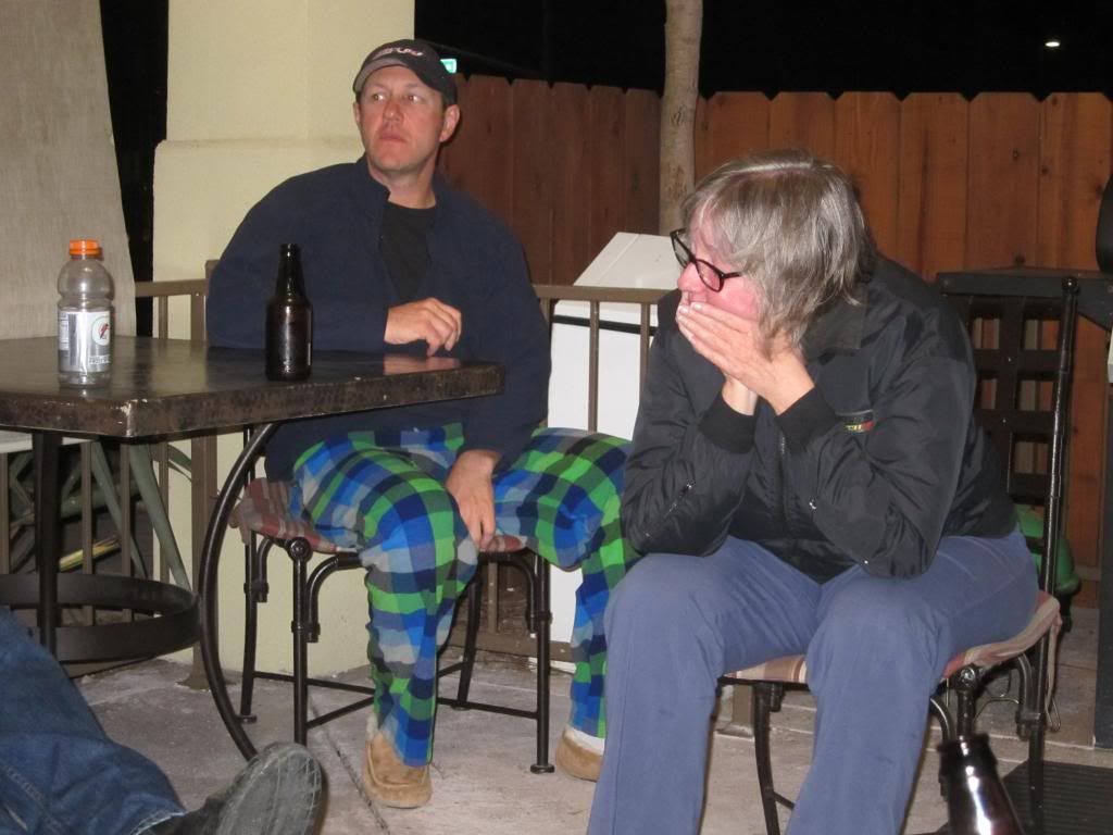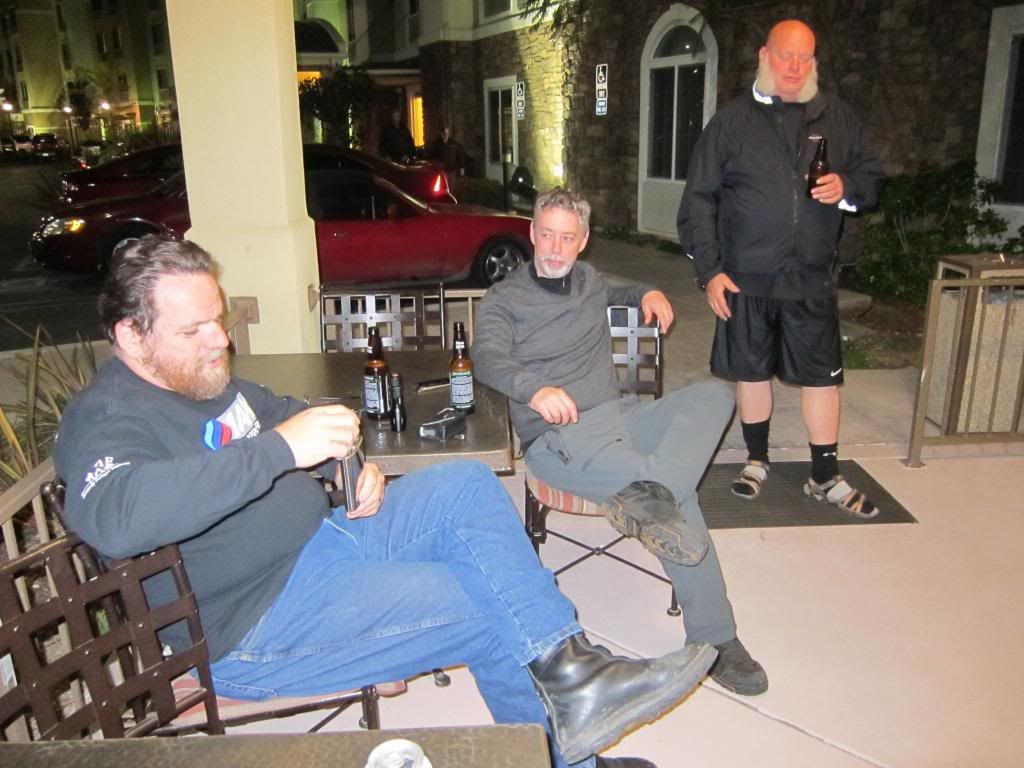We had found out that Eaton was nearby having dinner so we went out back to await his arrival (and we were probably getting a little too rowdy for the lobby….