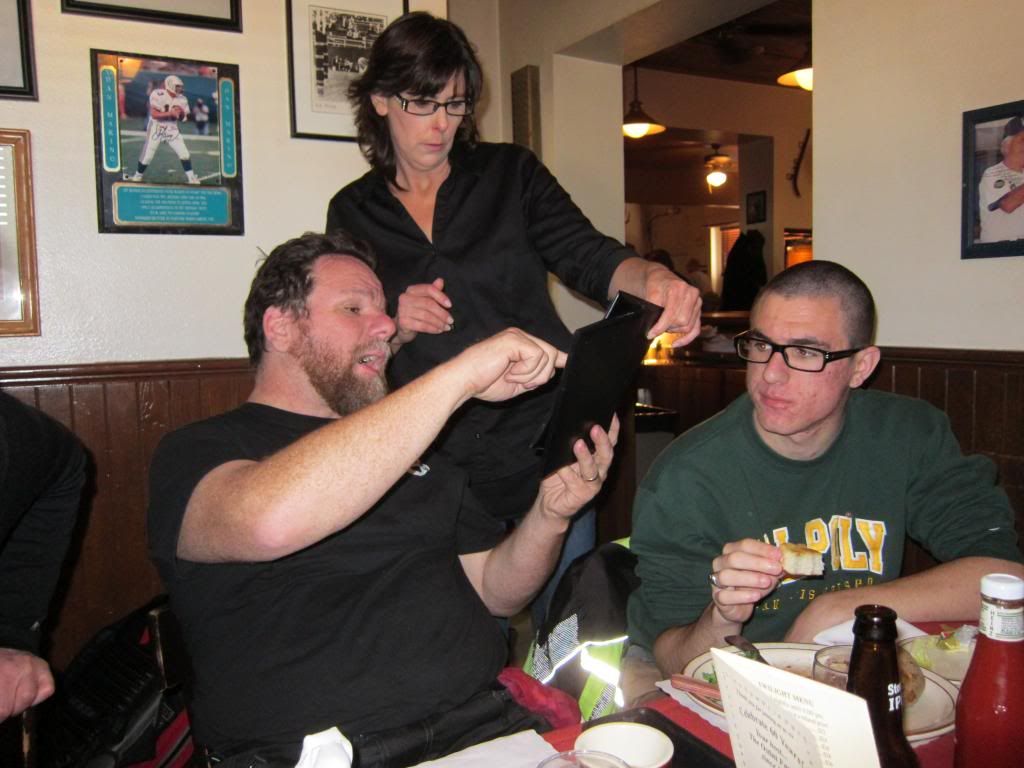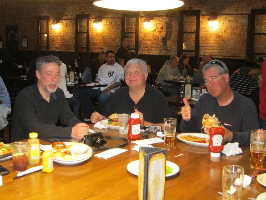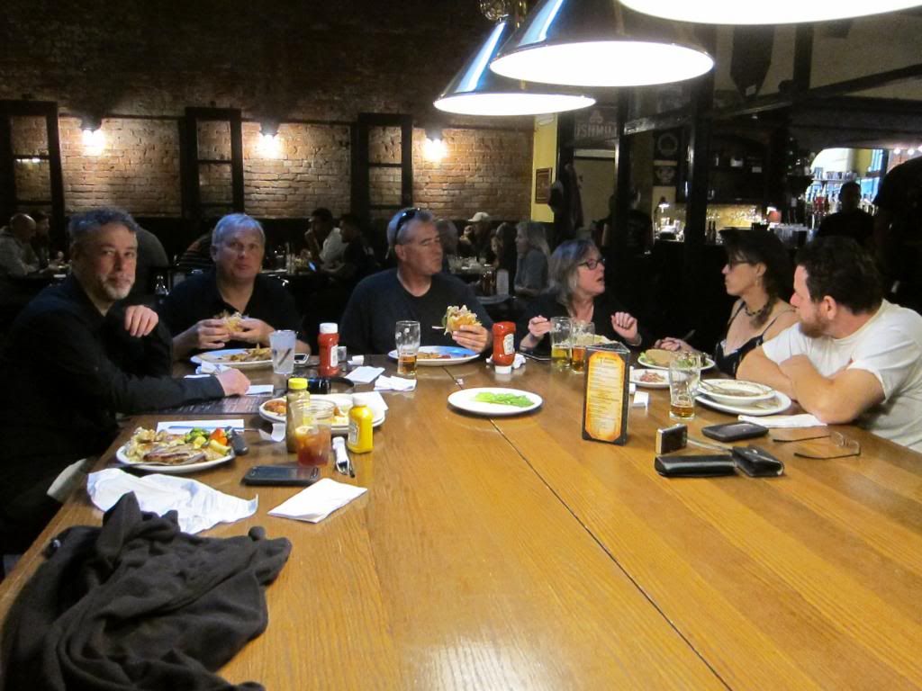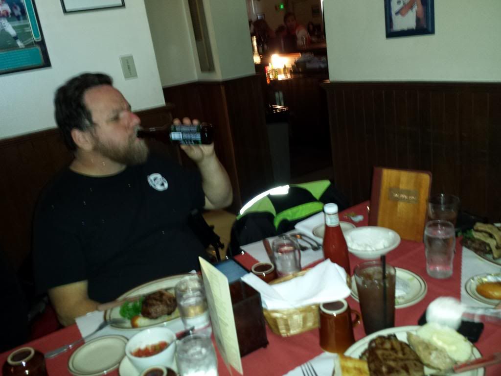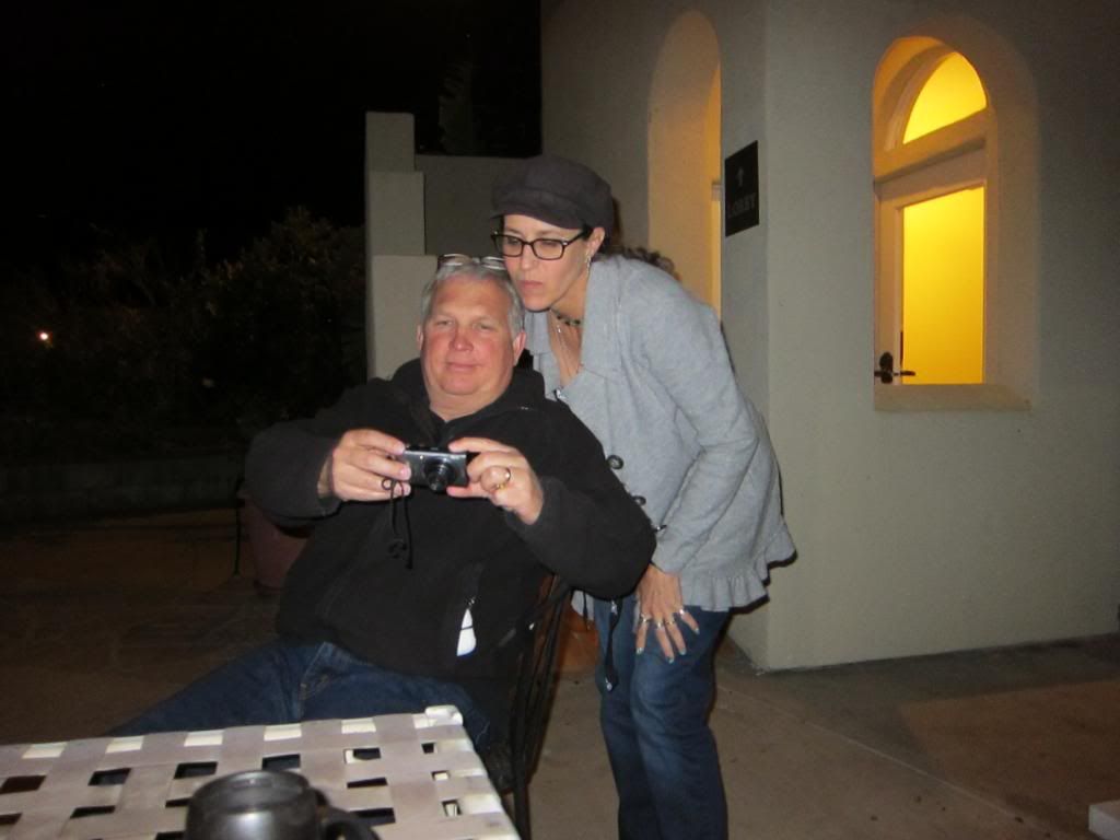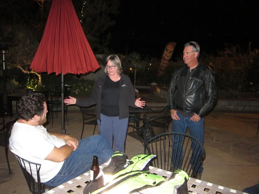 We had found out that Eaton was nearby having dinner so we went out back to await his arrival (and we were probably getting a little too rowdy for the lobby….