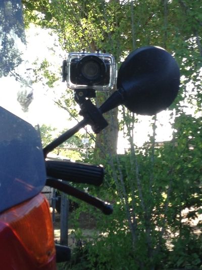 I picked up a knock-off moto-camera on Woot a while back. I used the handlebar mount on my left mirror stem on my K75S and the suction cup mount on the dashboard of my R11100RT. The videos turned out pretty good for a $45 camera.