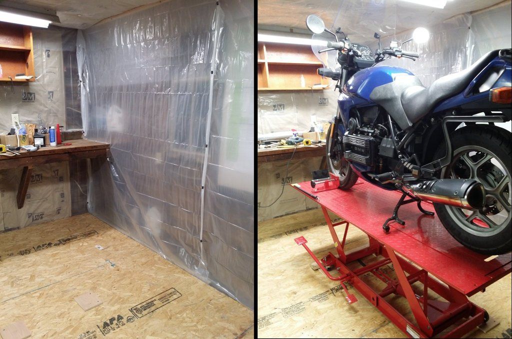 In Iowa, where winter temps hover in the 20's, an unheated, detached garage is not the best place to wrench on your favorite K-bike.  So this past January, I built a motobrick repair tent.