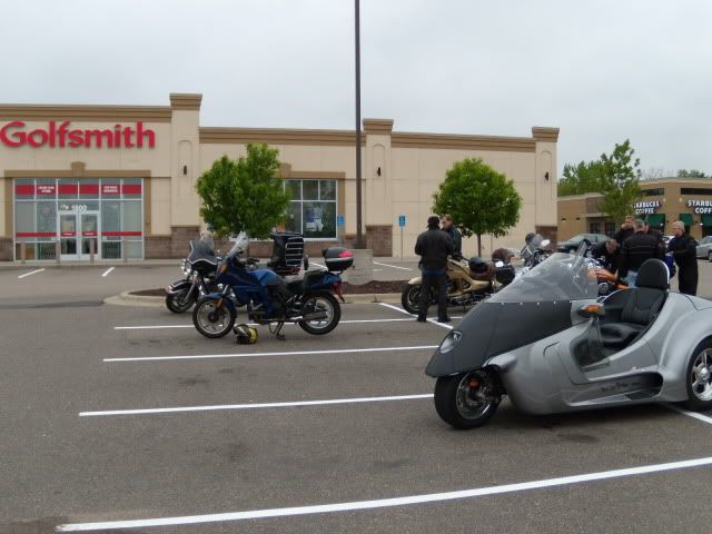 Our motorcycle gang, The Fossil Apostles, went on our Spring Ride yesterday.  Here is our meeting place.  We have an eclectic group of bikes, including a three wheeler this year: