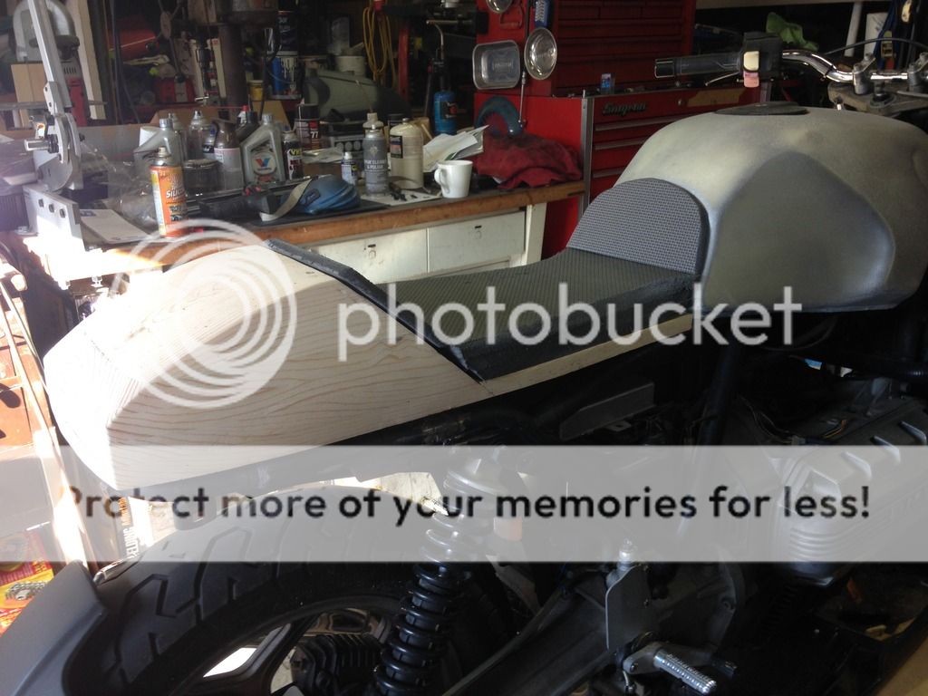 That Sir, is the finest example of making a cafe styled seat actually work w the funky frame/tank angles.