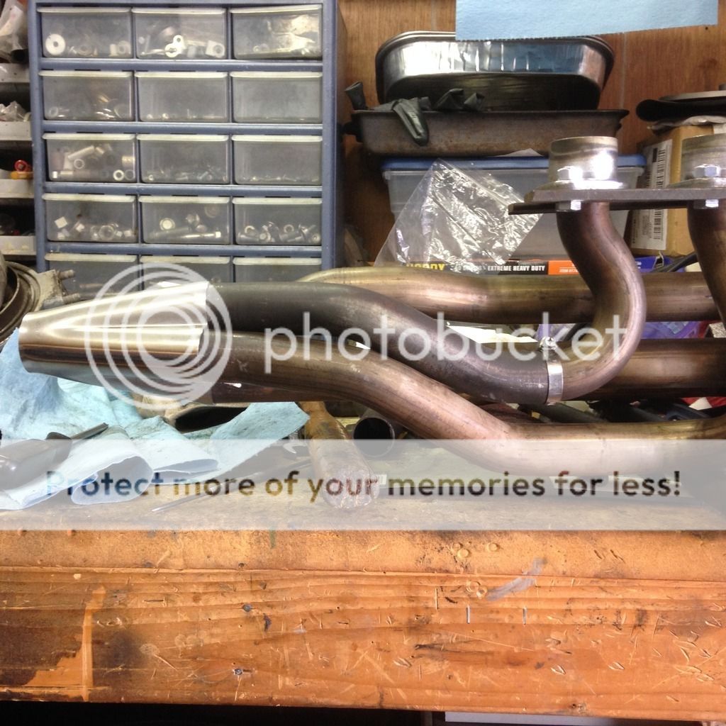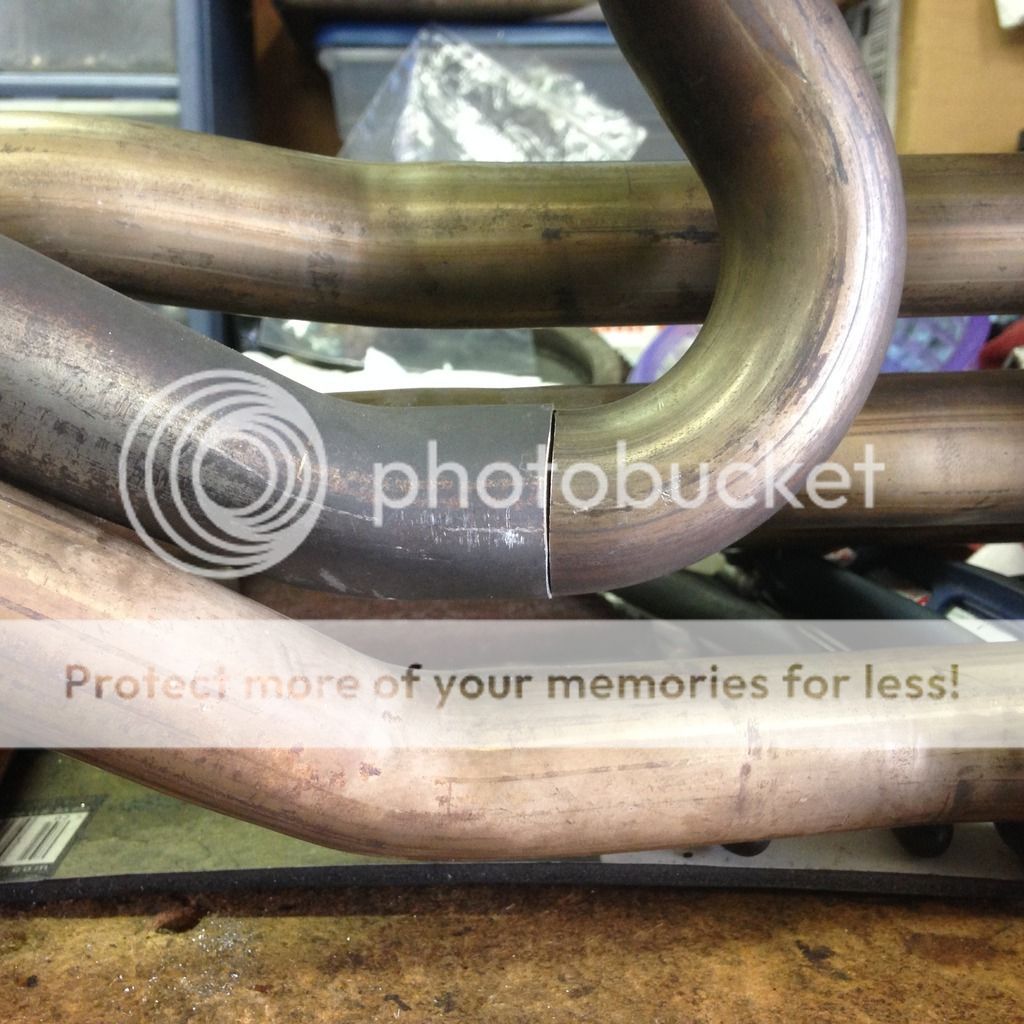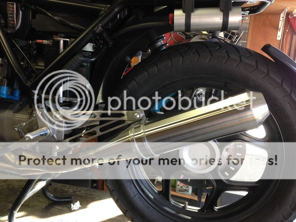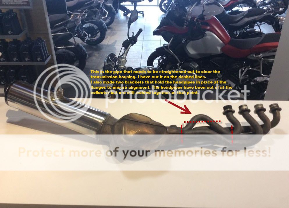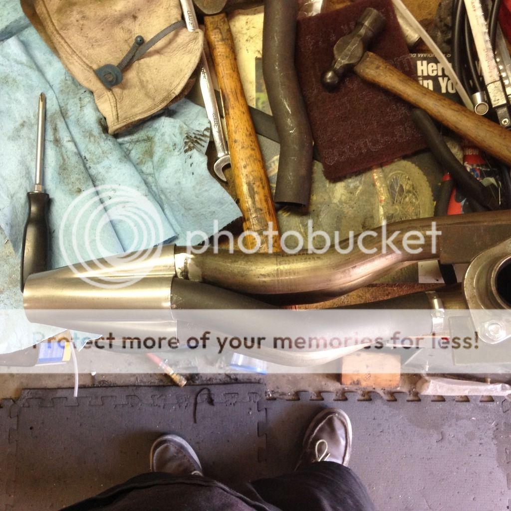 K1200 exhaust modification to fit the k100 transmission. The sidestand mount had to go as well.