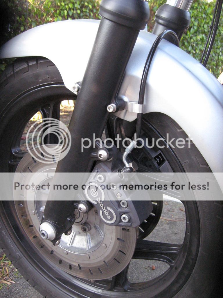 Now it is one line coming from the master cylinder down to the right side caliper and, through a double banjo off that line, across over to the left caliper.